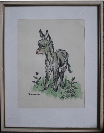 aquarell - heinz rammelt - esel - 21x28 gerahmt 31x41 200